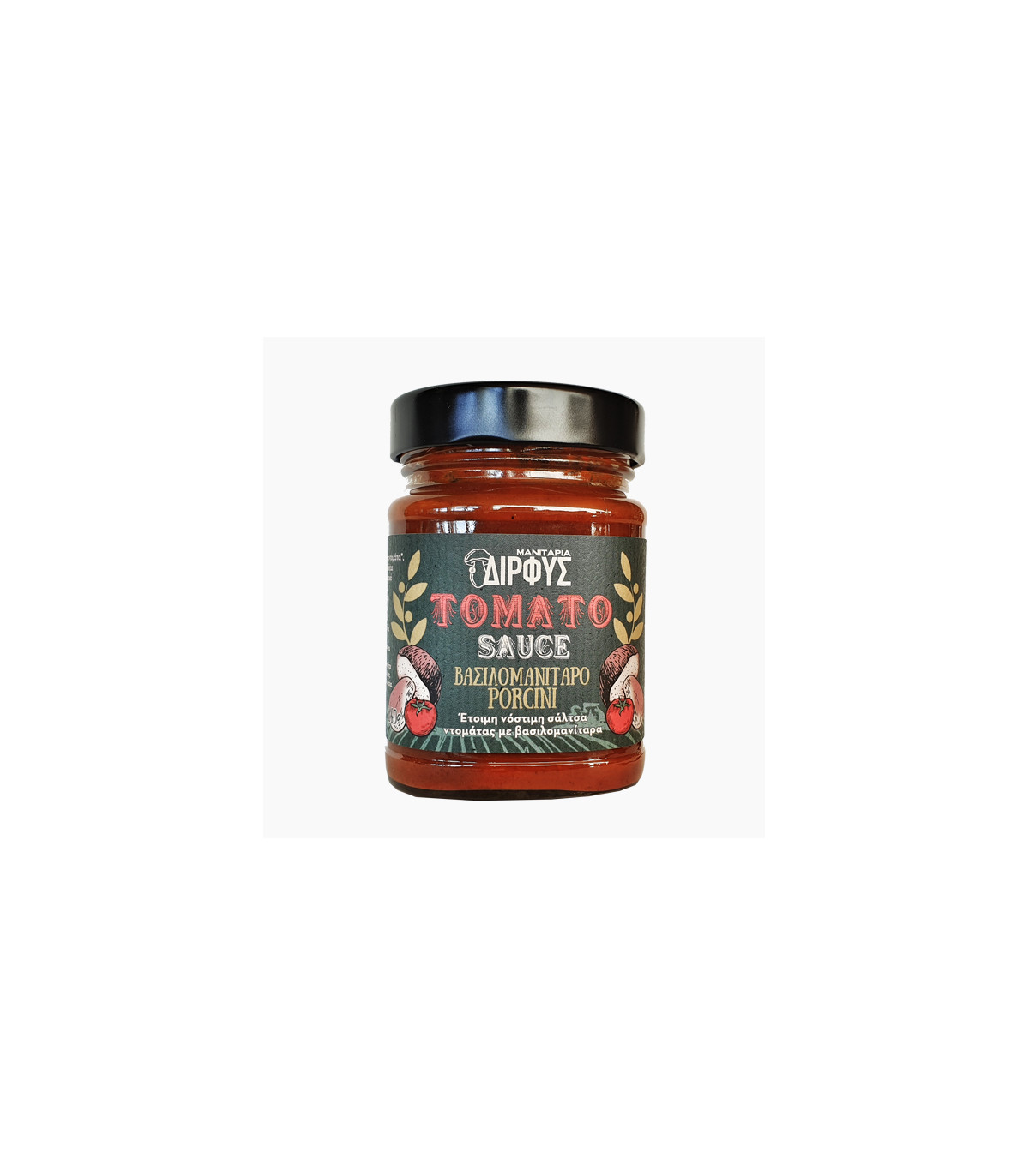 Zloženie: čerstvé paradajky, porcini (boletus aereus) 7%, extra panenský olivový olej, soľ, korenie, cukor. Nutričné hodnoty na 100g: Energia: 280kj/67kcal,