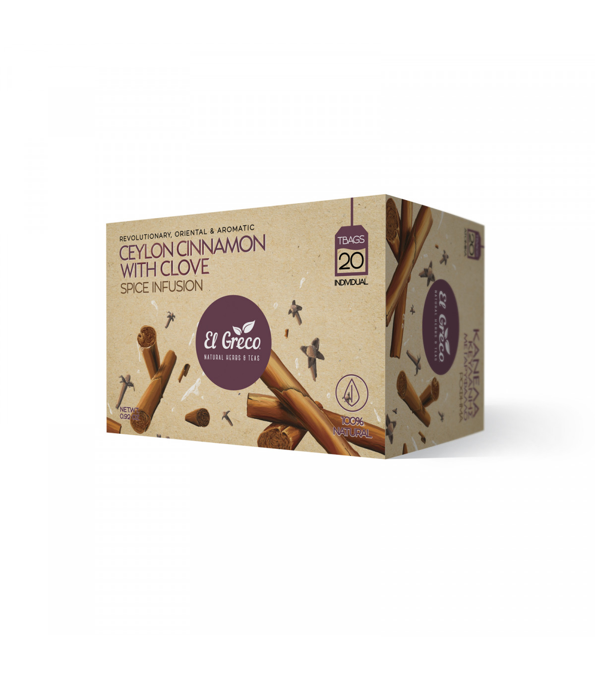 Prírodné ingredienciepre zdravý a chutný život.Cejlónská škorica bola identifikovaná ako najvhodnejšia na každodenné použitie. Vďaka svojim terapeutickým vlastnostiam pri znižovaní cholesterolu a hladiny cukru v krvi, ako aj antimikrobiálnym účinkom, je čoraz častejšie odporúčaná v medicínskom svete. Kombinácia cejlónskej škorice a klinčeka vytvára veľmi zdravý nápoj. Na teplý alebo studený nápoj so 100 % prírodnými zložkami bez kofeínu, na ktorúkoľvek hodinu dňa. Vyskúšajte ju s medom.