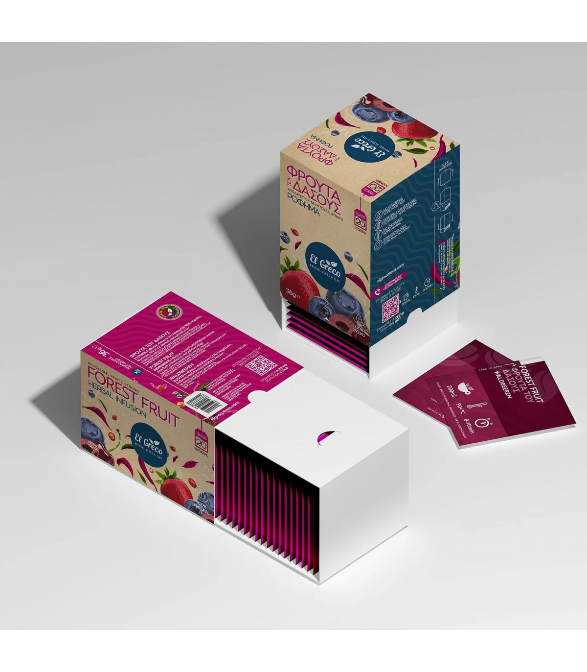 Prírodné ingredienciepre zdravý a chutný život. cesta k chuti. Živá aróma so sladkými a kyslými tónmi. Pre teplý alebo studený nápoj bez kofeínu kedykoľvek počas dňa. Vyskúšajte ho s medom. Zloženie: Ibištek, Lesné ovocie 30%: šípky, lesné jahody, čučoriedky, prírodná ovocná aróma.