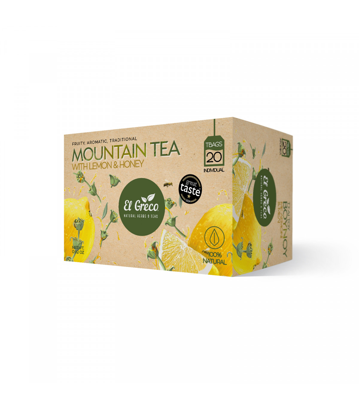 Prírodné ingredienciepre zdravý a chutný život. Tradičný grécky nápoj. Recept, ktorý sa vracia v čase. Na teplý alebo studený nápoj so 100 % prírodnými ingredienciami. Bez kofeínu.Zloženie: Horský čaj, citrón, harmanček, prírodné arómy, med, listy stévie