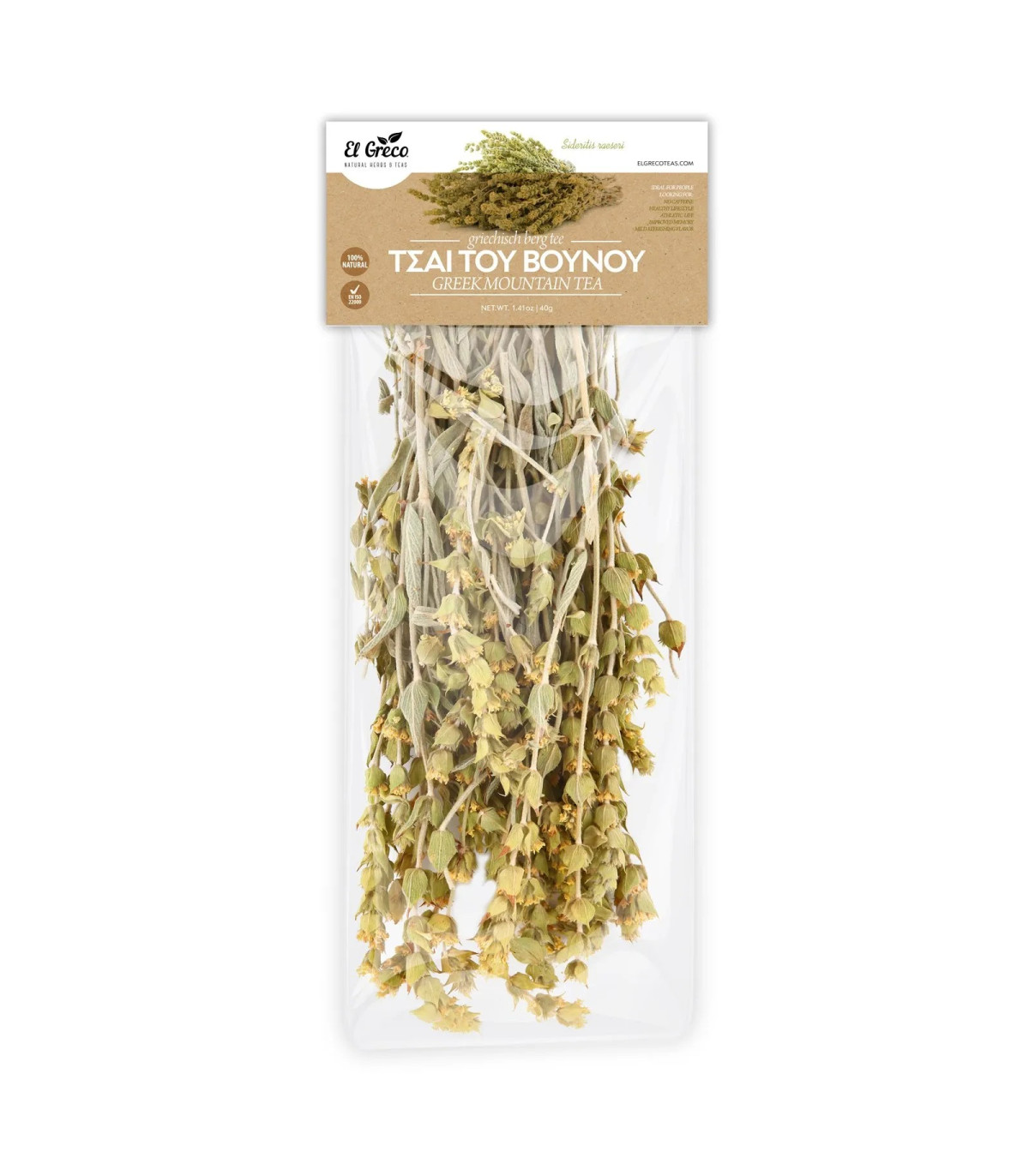 Prírodné ingredienciepre zdravý a chutný život. „Horský čaj“ je grécky produkt, ktorý sa zbiera a suší čisto prírodným spôsobom bez akýchkoľvek chemických postupov. Je veľmi chutný a aromatický a možno ho konzumovať ako nápoj, studený alebo teplý s medom alebo len tak.