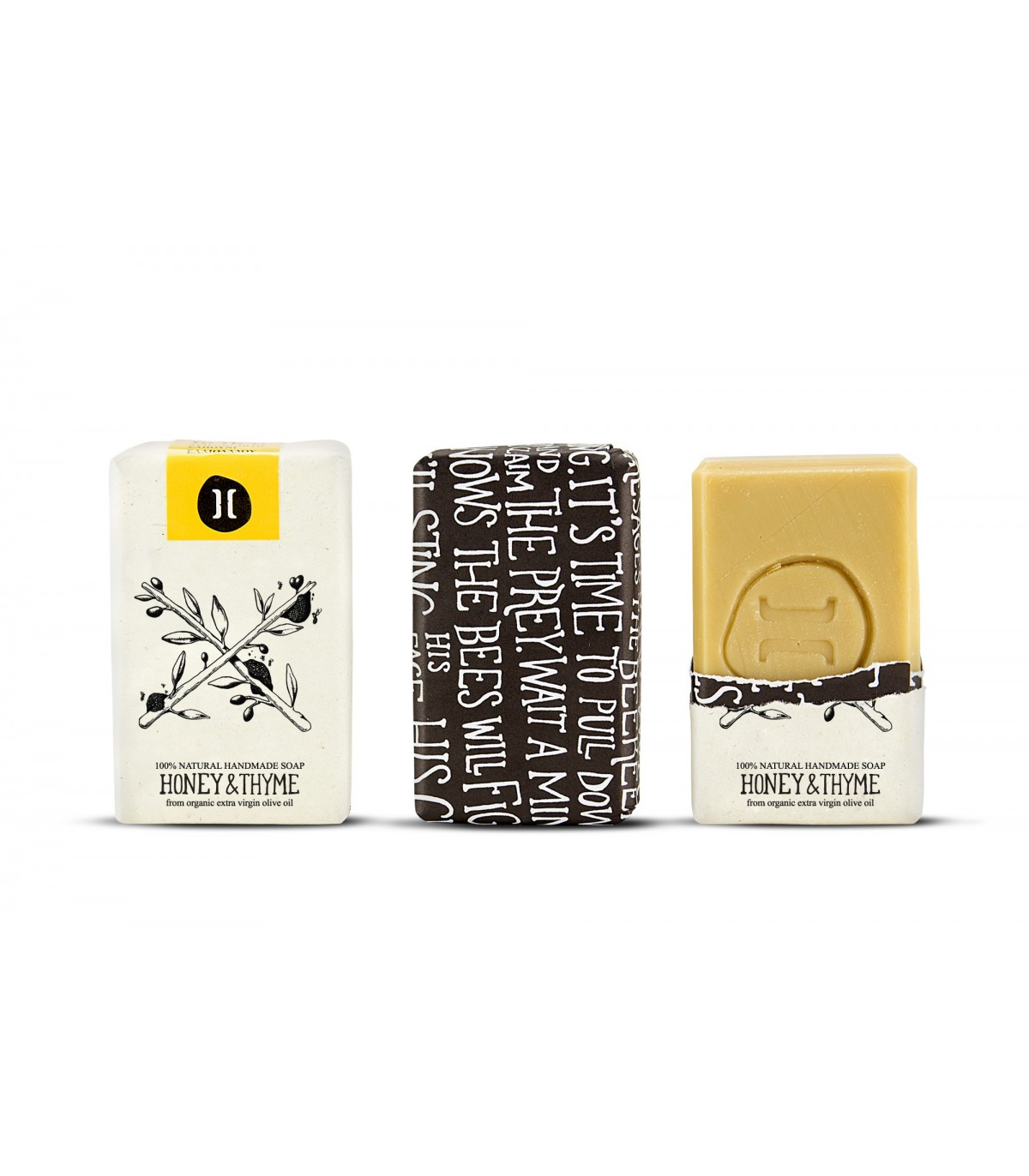 Helleo predstavuje 6 zmesí 100% prírodných olivových mydiel a 5 zmesí 100% prírodných všestranných vôní. Každá zmes má svoju silnú osobnosť a vyrába sa za studena v malých dávkach z organických a iba miestnych surovín, ako je extra panenský olivový olej, tymiánový med, červené víno, čierne pivo a divoké bylinky. V obaloch sa používajú iba recyklované materiály, zatiaľ čo odpad je takmer nulový.