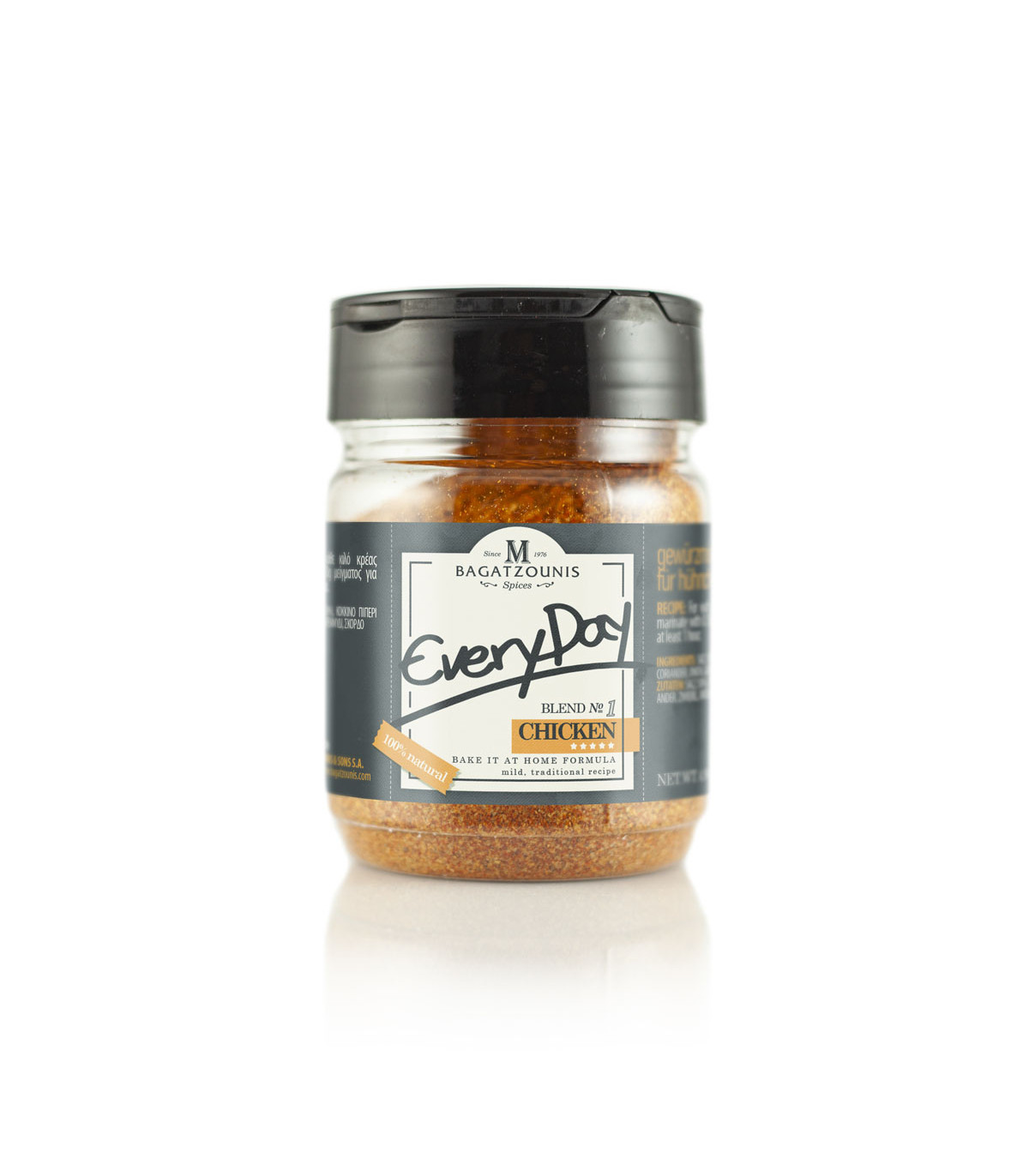 Vynikajúce korenie pre Vaše každodenné recepty na pečené kura 100 % prírodné ingrediencie. Tradičná receptúra. Zloženie: morská soľ, sladká paprika, koriander, cibuľa, cesnak. Minimálna trvanlivosť do: vid´. obal. Skladujte na chladnom a suchom mieste. Krajina pôvodu:Grécko.