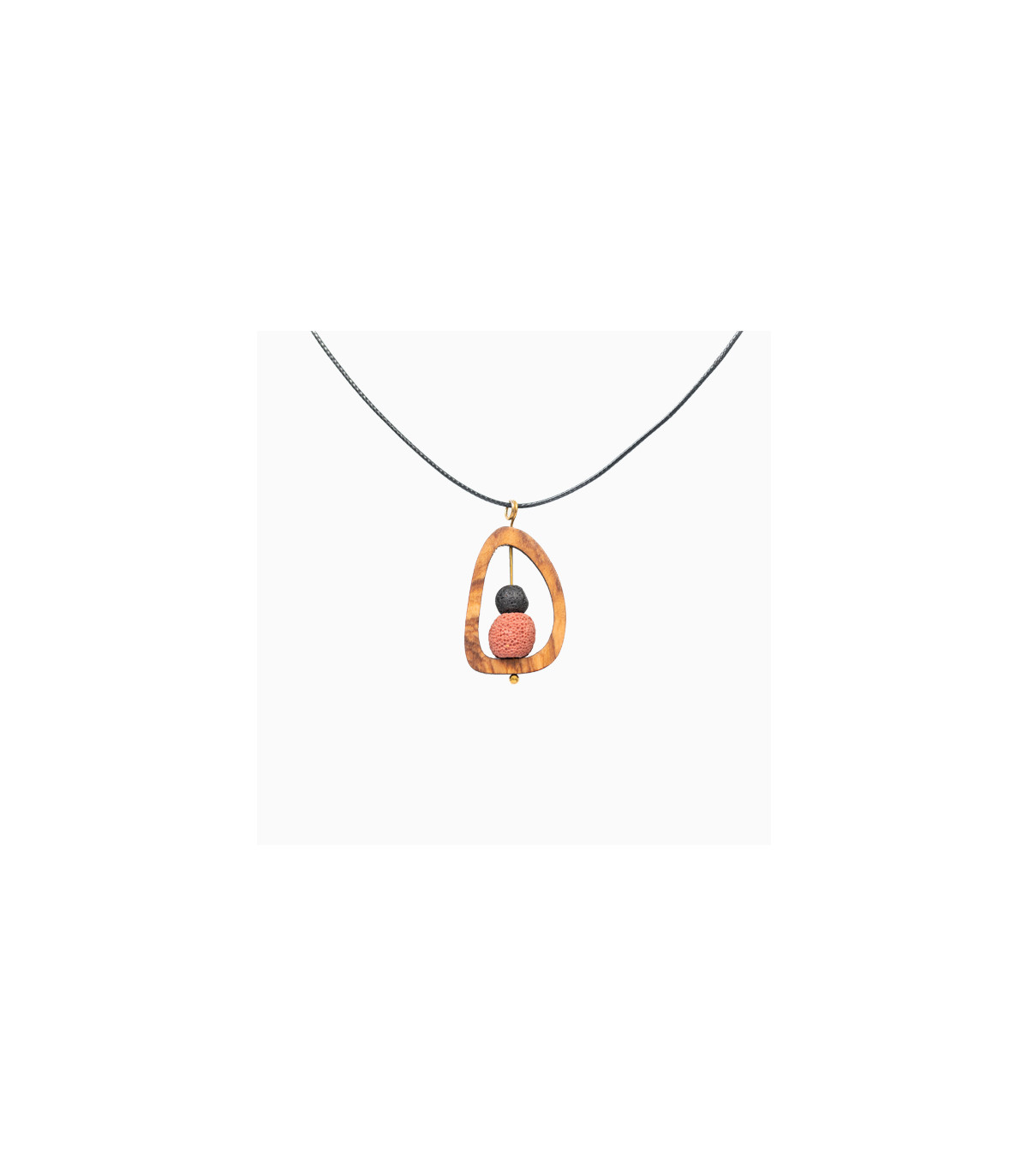 Prívesok z olivového dreva, lávový kameň, červený