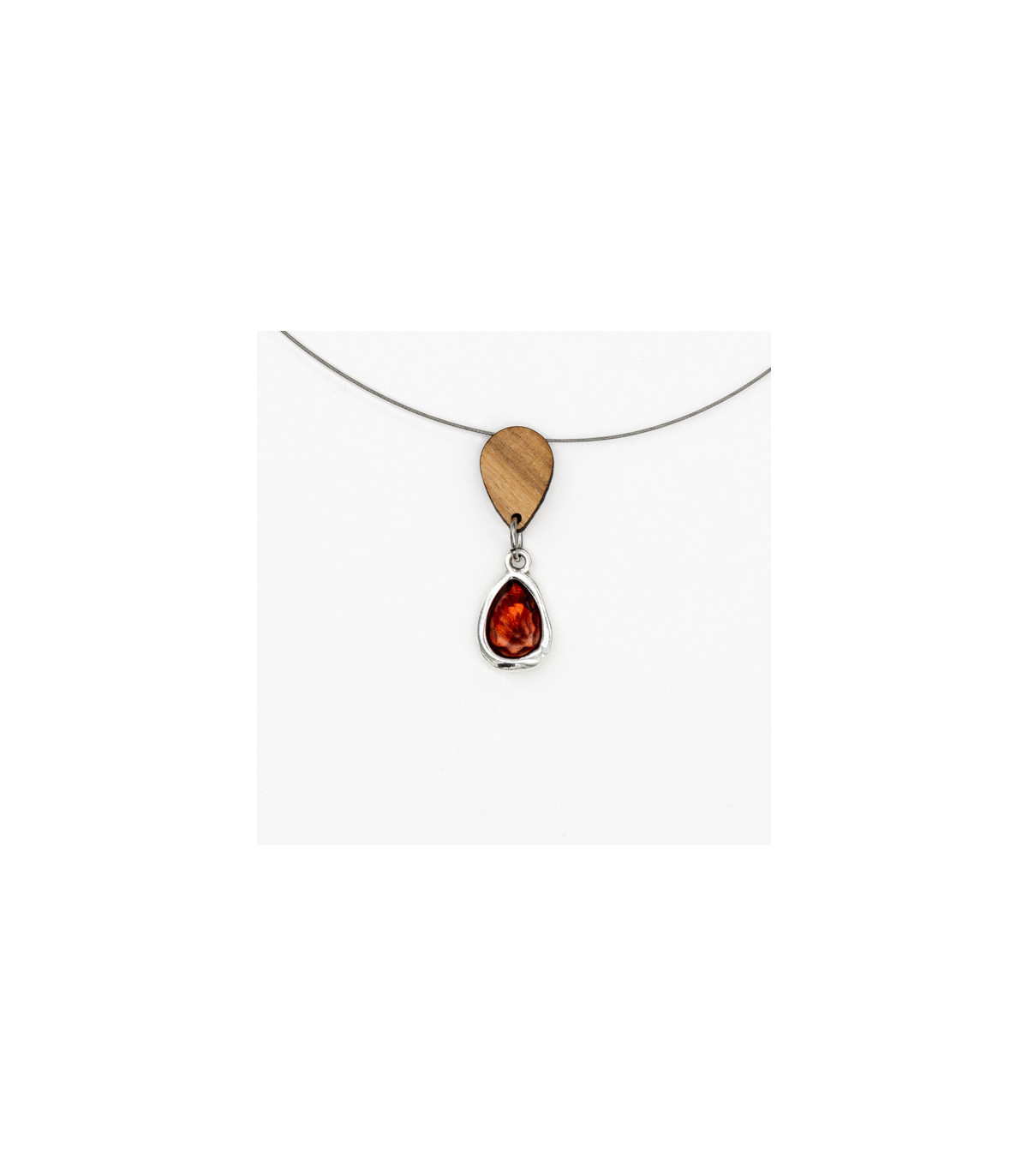 Prívesok z olivového dreva, červený kameň
